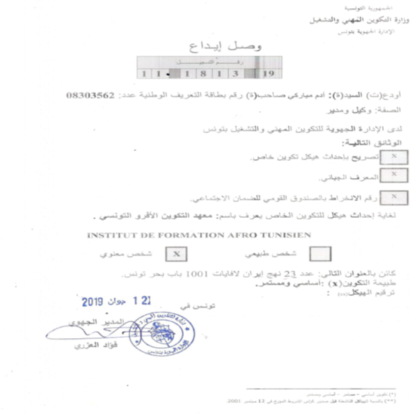 L’institut IFAT (SARL) est créé en mai 2019 sous le numéro d’agrément ministériel 11-1813-19 et compte plusieurs types de formation homologuées et internationales telles que le BTP formalités douanières, le BTP comptable d’entreprise, le BTS commerce international et le coaching sportif (IFAT est leader mondial dans ce domaine). IFAT a signé plusieurs conventions avec plusieurs salles de sport et agences d’immigration comme CUBEX PRO MAX INTERNATIONAL, AL KAWADER, EMNA for Recruitement,..